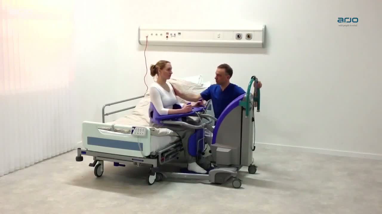 Sara Plus is a powered standing and raising aid designed for active transfers, balance, stepping and gait training.